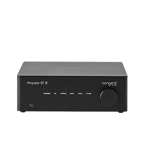 Vores prisvindende Tangent Ampster BT II stereoforstærker, som leverer hele 2 x 50 watt ved 4 ohm og har et væld af tilslutningsmuligheder. Der er mulighed for at tilslutte både analoge, digital og trådløse kilder via bluetooth. Den anvendes både til installationer, som forstærkeren i et minianlæg med to reolhøjttalere og til gulvhøjttalere i mindre setup.