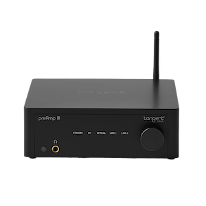 Forforstæker fra Tangent med Bluetooth, Optisk ind, analog ind, RIAA, XLR, hovedtelefonforstærker og meget mere.